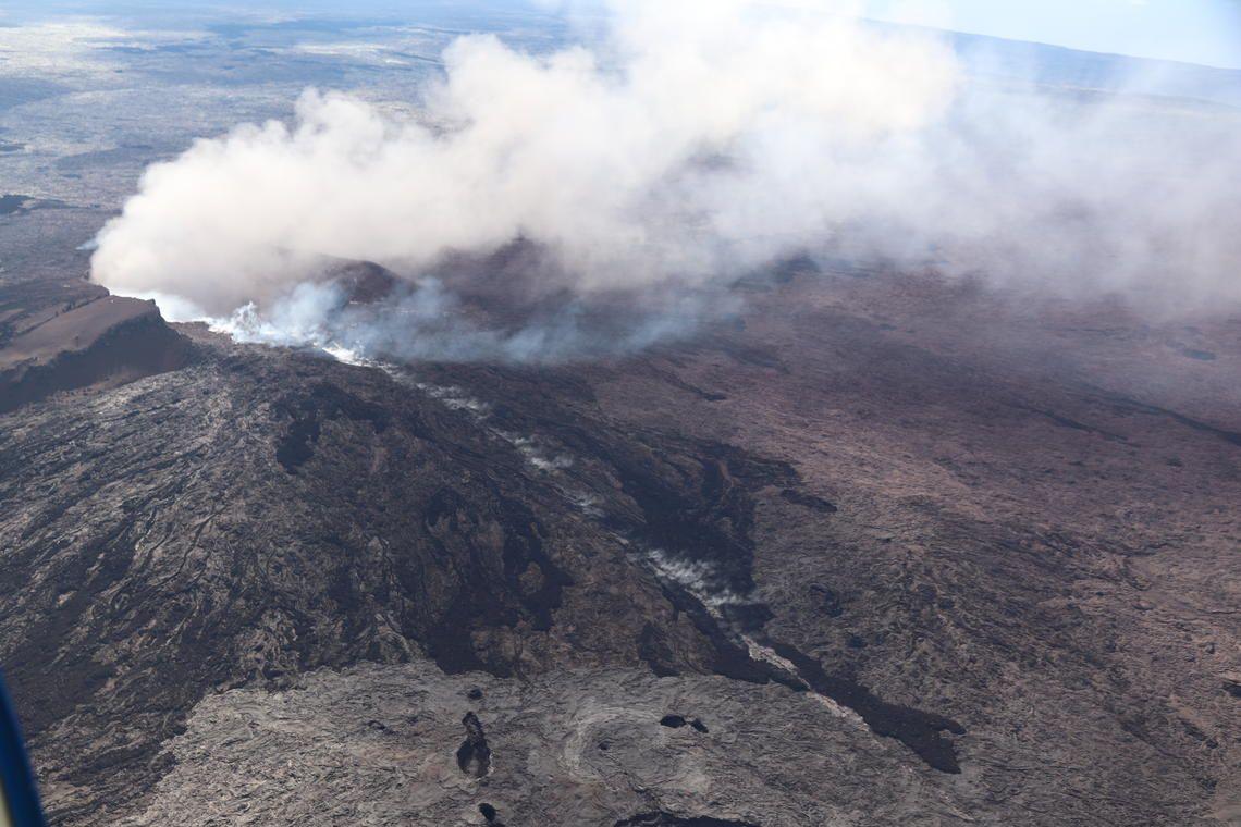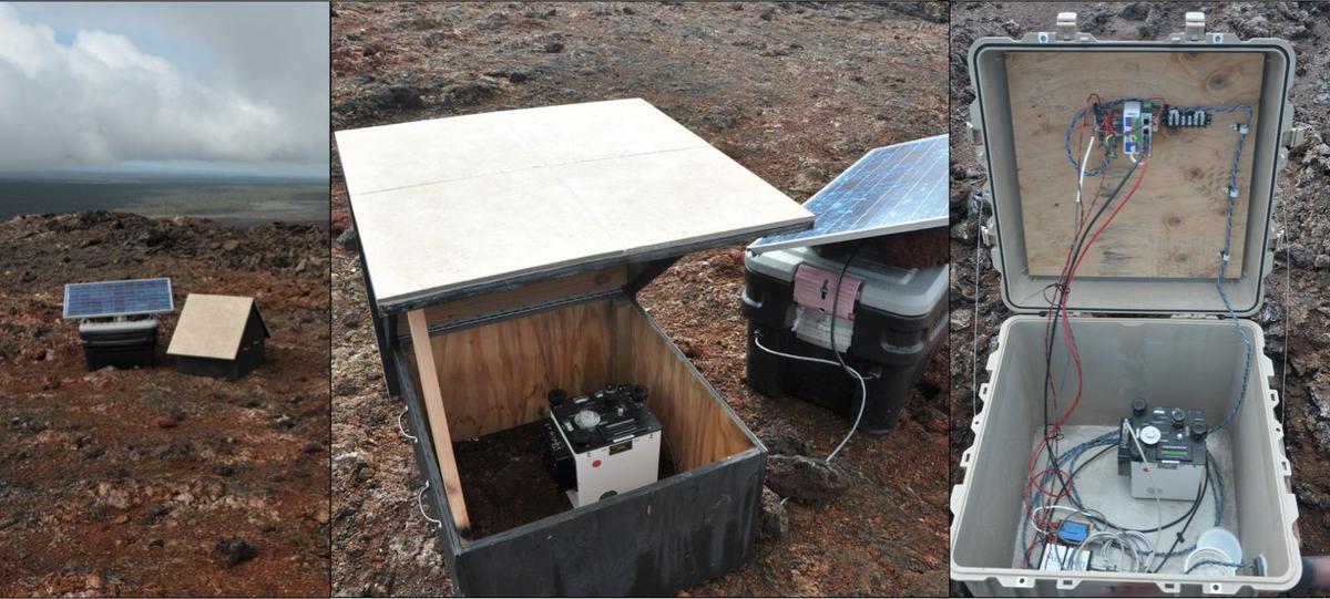The two instruments measuring continous gravity changes on Kīlauea during its 2018 summit collapse and eruption have recorded the largest such changes ever measured on Earth. Scientists from across the world have been sharing their research on the historic Hawaiian eruption at the American Geophysical Union's Fall Meeting 2020, including these unprecedented findings by USGS volcanologists Michael Poland and Matthew Patrick and INGV's Daniele Carbone. At the summit, the second-largest change in continuously measured gravity was recorded over several days as the summit lava lake drained away from May 3rd to 7th, 2018. The largest continuously measured gravity change ever was recorded over a couple of hours at Puʻuʻōʻō on May 1st, 2018, corresponding to a modeled ~300 m (~1000 ft) drop in the lava level inside the crater. The values, while still only about one millionth of “normal gravity” at the Earth's surface, are of a magnitude larger than those typically observed at other volcanoes, whose underground magmatic movements shift the most mass of any natural process on the planet and register the strongest gravity change signals. The gravity measurements, combined with 3-D models of the amount of lava that drained both at the summit and Puʻuʻōʻō, allowed the researchers to calculate the density of the missing lava at either locale. At the summit, the upper ~200m (~650ft) of the lava had a calculated density that is a factor of 1.7 greater than water, at Puʻuʻōʻō of 1.9 greater, while that of a cooled basalt rock is a factor of 2.9 greater. The lava's density rose as it lost gas from the lava lake, plunged back underground and journeyed 18 km (11 miles) down the volcano’s East Rift. Once it got there, the more concentrated lava fed the Puʻuʻōʻō eruption from a lower elevation above sea level than the summit lava lake, by just the amount expected from the observed 12% density difference. Further boosting the usefulness of gravity measurements on active volcanoes, the scientists also caught one of the first signals of change on April 30, 2018, just a few minutes before the collapse of Puʻuʻōʻō. A small fissure erupted on the cone's west flank prior to its cave-in, with the gravimeter able to distinguish the opening of the “dry crack”, followed by its filling with denser lava over a few minutes. The researchers believe that as gravimeters become cheaper and easier to deploy, they could fill an important, early-warning role in the volcano monitoring toolkit. “Anyplace where magma is shallow and changes can happen quickly, it can be outstanding” said Dr. Poland, who presented the research. “It's not so great where magma is deep and changes are gradual. And I think the pre-collapse time series for Puʻuʻōʻō demonstrates that the gravity signal was much stronger and less ambiguous than the contemporary tilt signal. That might make it easier to interpret changes as they happen -- if you have a more obvious signal to look at.” While there have been similar or larger gravity changes documented on other volcanoes during periodic surveys, the record-setting measurements in this Kīlauea study were captured by continually-recording instruments that are better suited for real-time monitoring. Broader-ranging gravimetry field campaigns are also routine on the Hawaiian volcano, and when the results of their differences pre- and post-collapse are announced, Dr. Poland is confident that Kīlauea will claim the record for the largest measured change in gravity over a longer interval, too. The 2018 Kīlauea eruption remains traumatic for many island residents due to the historic nature of its destruction, with over 700 structures destroyed as well as large areas of natural and cultural resources buried by the volcano's largest eruption in 200 years. However, it has also provided scientists with an equally historic opportunity for new insights and observations, benefiting not only our island residents during future eruptions but also communities living on other volcanoes across the world. *** Image captions: 1. Halemaʻumaʻu lava lake drains as the gravity drop is on May 6, 2018, with gas bubble bursts visible on its surface as its lava continues to degas. Image credit: USGS-Hawaiian Volcano Observatory. 2. The record continuous gravity drop signals measured at Kīlauea's summit and rift zone. Image credit: Dr. Michael Poland, USGS. 3. The continuous gravity measuring instruments (gravimeters) at Kīlauea's summit (left and center) and Puʻuʻōʻō crater (right). Image credit: Dr. Michael Poland, USGS. 4. Puʻuʻōʻō cone on May 3, 2018, several days after its crater floor collapsed. The line of steam in the lower center of the image marks the trace of the initial fissure on the west flank, whose signal was detected prior to the collapse. Image credit: USGS-Hawaiian Volcano Observatory. 5. On May 8, 2018, scientists constructed a 3-D model of the Halemaʻumaʻu vent, used in this study to calculate the density of lava at Kīlauea's summit. Image credit: USGS-Hawaiian Volcano Observatory video capture. 6. A similar approach was used at Puʻuʻōʻō crater in the days after the collapse. This 3-D model of the crater on the volcano's East Rift was released on November 6, 2018. Image credit: USGS-Hawaiian Volcano Observatory video capture.