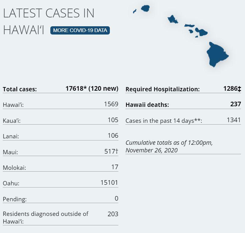 120* New Cases of COVID-19 in the state, Nov 26th (Thanksgiving)