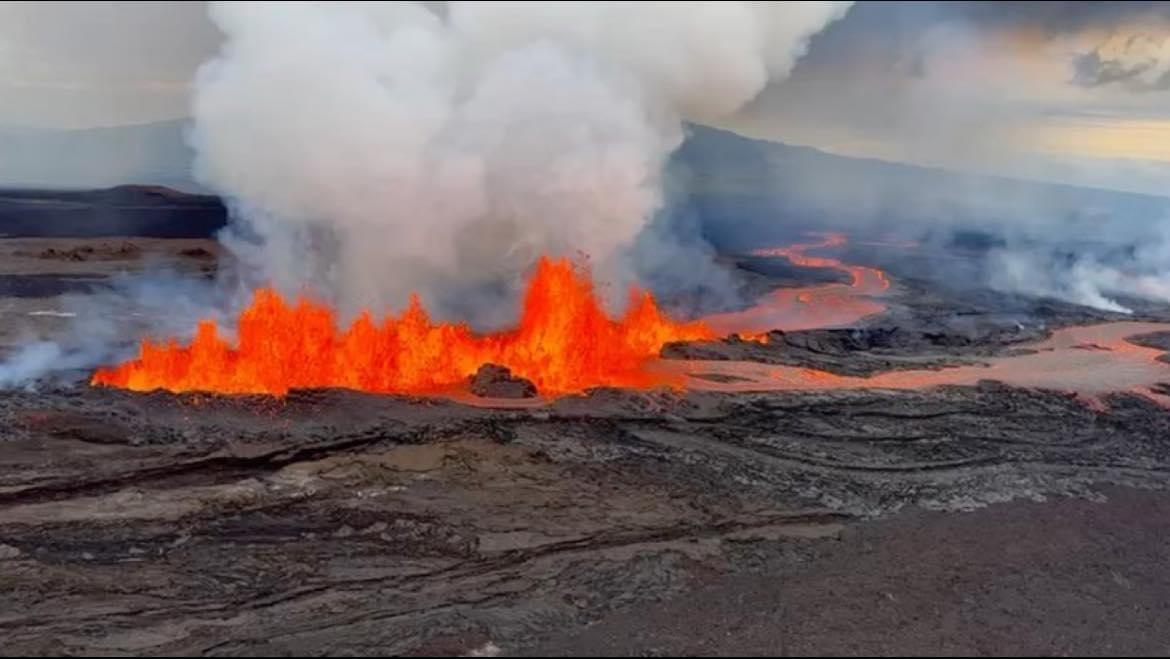 Mauna Loa eruption as of 7:26 am this morning! Image courtesy of Paradise Helicopters