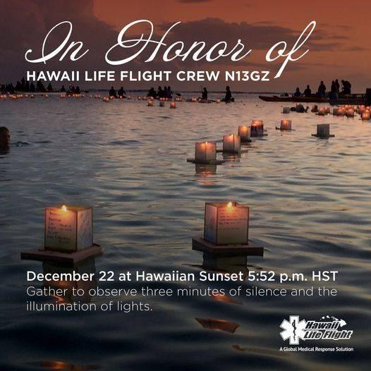 At Sunset This Evening To Honor The Three Crew Members From Hawaii Life Flight N13GZ. "Wherever you are, with family and friends, please take a moment to observe three minutes of silence -- one for each of the crew members -- beginning at 5:49 p.m. and concluding at sunset, 5:52 p.m. HST." Thoughts and prayers to the families of those lost. We ask their names not be shared out of respect.