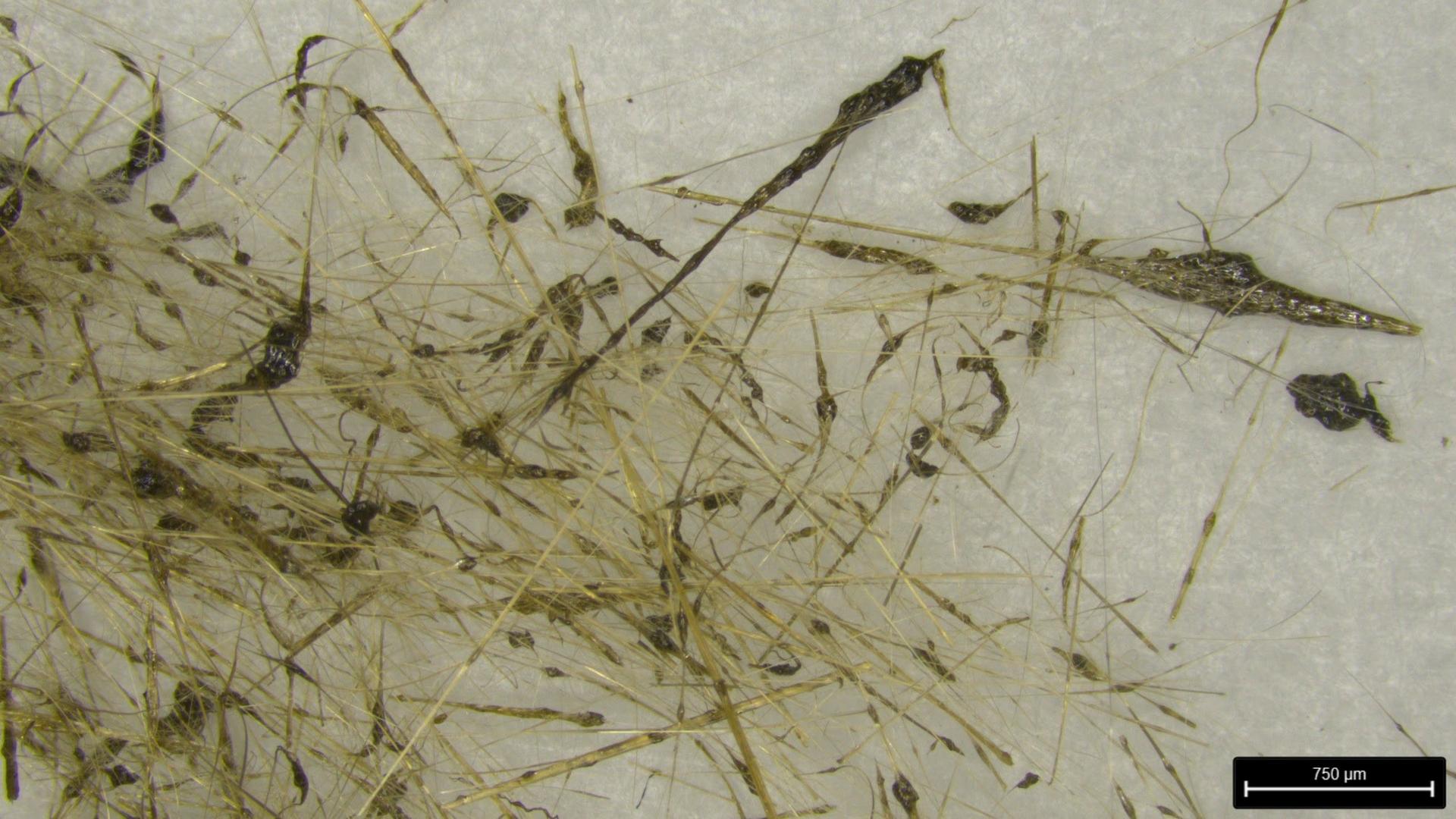 USGS-HVO — Shiny and elusive, featherlight and golden-brown. If poets were to write about rocks, I’m sure they would sing their praises of Pele’s hairs. Don’t be fooled, though, because Pele’s hairs are strands of volcanic glass, and they can pose a serious hazard. The fragile hairs easily break into tiny pieces, and no one wants glass splinters in their eyes or skin that just keep breaking when you try to pull them out. So, leave the hairs be if you find them. Pele’s hairs can be more than 1 meter (3 feet) long and are often less than 1 millimeter (0.04 inches) thick. During the recent Mauna Loa eruption in November–December 2022, Hawaiian Volcano Observatory scientists went to explore the Daniel K. Inouye Highway (Saddle Road) for erupted material. Along the sides of the road, they saw strands up to 50 centimeters (20 inches) long, as well as clumps of entangled hairs. Observant residents and visitors saw them on the ground at the Mauna Kea visitor center and all the way to Honokaʻa, reporting their findings to HVO. We were glad they did! Pele’s hairs form when molten lava is torn apart. Like the thinning strings that form when you pull your hands away from sticky dough, the hair strands form when blobs of lava are torn apart and the fluid lava still connecting them is stretched thin. The outer skin of the lava is cooled quickly by the air and forms volcanic glass that freezes this fragile moment in time. However, if the skin is cooled too quickly before it is stretched thin, it will break into glass pieces instead. If the lava is too sticky, it cannot be stretched enough to form hairs. That is why Pele’s hairs only form on basaltic volcanoes that produce fluid lava like in Hawaii. However, if the melted rock is too fluid, it will behave more like water and form droplets instead. In Hawaii those are known as Pele’s tears. The same is true if the air is too hot and doesn’t cool the skin fast enough. If pulled apart too quickly the lava will not have enough time to stretch, and again it will break into pieces. So, Pele’s hairs only form under very specific conditions, and the best conditions are in vigorous Hawaiian lava fountains or in bubbling lava lakes. Scientifically, Pele’s hairs are part of the tephra family that includes all solid particles flying out of a volcanic vent. The most common way to classify tephra is by grain size. For example, ash is defined as tephra particles smaller than 2 millimeters (0.079 inches), and lapilli is defined as tephra particles between 2 millimeters and 64 millimeters (0.079 to 2.52 inches). The largest tephra particles have two names. Tephra particles above 64 millimeters (2.52 inches) are called bombs if they are made from the freshly erupting magma, but they are called blocks if they are made from preexisting rocks blasted by more explosive activity. But what about Pele’s hairs? It seems a bit of a stretch (pun intended) to call them “bombs” even though they are often more than 64 mm (2.52 inches) long. Bombs or blocks typically fall in the area close to the vent and pose a significant hazard in that area. In 1924 a photographer that ventured too close to the explosions from Kīlauea's Halema‘uma‘u crater was fatally injured by a falling block. Pele’s hairs falling on you would not do that. Instead, they travel with the wind like ash. Pele’s hairs can spread far and are a regional hazard like ash particles, though the long bendy stands don’t have the same aerodynamic properties as tiny pieces of ash. This becomes a problem when trying to forecast their whereabouts using tephra dispersal models, so to classify them as ash also makes little sense. Perhaps Pele’s hairs are just unique. What other type of rock can curl up in mangled balls yet shatter from “bomb-size” to “ash-size” within a second? So, make sure to appreciate these fascinating glass strands if you see them, but watch with care. ---- Images and captions by USGS-HVO: [1] Pele's hair covered much of the ground in the area immediately downwind of Halema‘uma‘u crater during the lava lake eruption of 2008–2018. Accumulations about 1 meter (1 yard) wide were typically found on the windward sides of curbs in the closed Halema‘uma‘u parking lot. Photo from May 3, 2012. [2] A tumbleweed of Pele’s hairs—collected near Saddle Road on November 29, 2022—viewed under a microscope. The scale bar in the lower right is 750 micrometers (0.03 inches) wide. The golden-brown glass strands are intertwined, whereas the thicker dark glass is rigid. The shape of the darker glass reflects the shape of the lava droplets as they quenched. ---- Volcano Watch is a weekly article and activity update written by U.S. Geological Survey Hawaiian Volcano Observatory scientists and affiliates. Today’s article is by HVO affiliate Jo Schmith of the Center for the Study of Active Volcanoes.