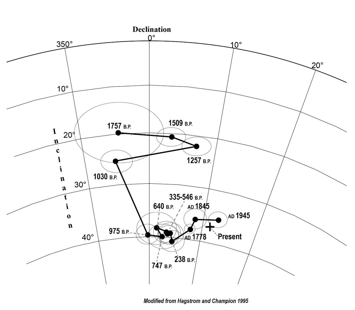 Paleomagnetism and its geological applications USGS-HVO — When we think about the Earth's magnetic field, we often associate it with compasses and navigation. However, did you know that our planet's magnetic field has a rich history of change, including switching of polarity, that spans millions of years? This captivating field of study, known as paleomagnetism, allows us to delve into the Earth's magnetic past and understand how our planet has evolved over time. In this Volcano Watch, we will explore the concept of paleomagnetism, its components, its significance in geology, and the noteworthy contributions of USGS scientist Duane Champion in volcanology. This article is dedicated to Duane, a good friend and valuable colleague who passed away earlier this year. The Earth's magnetic field is generated by the motion of molten iron in its outer core. This field not only provides us with our compass directions but also leaves a permanent record in rocks as they solidify or settle. Paleomagnetism is the study of the Earth's ancient magnetic field, preserved in rocks, minerals, and sediments. It is based on the principle that certain magnetic minerals within these materials record the direction and strength of the Earth's magnetic field at the time of their formation. By analyzing these preserved records, scientists can reconstruct the movements of tectonic plates, study the Earth's magnetic field reversal events, gain insights into past climates, and in our case reconstruct the geologic histories of volcanoes. Paleomagnetism involves several key components that aid in deciphering the Earth's magnetic history. One of these components is magnetic polarity, which refers to the direction of the Earth's magnetic field at a particular location and time. The Earth's magnetic field periodically flips, with the north and south magnetic poles exchanging places. By analyzing the magnetization of rocks, scientists can determine the polarity of the Earth's magnetic field at the time the rocks formed. Another crucial component is magnetic inclination, which measures the angle between the magnetic field lines and the Earth's surface. This inclination provides information about the latitude of the rock's formation. By comparing the inclination of rocks from different locations and ages, scientists can reconstruct the movement of continents over time. Secular variation refers to gradual changes in the Earth's magnetic field over durations shorter than those between polarity flips. These variations can be observed in the orientation and intensity of the magnetic field. By examining rocks of different ages, scientists can determine the past characteristics of the Earth's magnetic field. This information helps in understanding plate tectonics, and in Hawaii, it helps to understand past periods of eruptive activity. Paleomagnetism also aids in dating rocks and archaeological artifacts. By comparing the magnetic signature in rocks to known changes in the Earth's magnetic field and/or dated lava flows, scientists can estimate their ages. This technique, known as paleomagnetic dating, complements other dating methods and contributes to the development of accurate geological timescales. In geologic terrains, specifically in Hawaii, reliably correlating older lava flows is a major challenge on volcanoes that consist entirely of compositionally similar basalt. Criteria for correlation include physical appearance, flow morphology, paleomagnetic pole directions, chemistry, and assorted evidence on the lava flow age. Magnetic minerals that crystallize from molten magma record the Earth’s magnetic field direction at the time of their cooling. Accordingly, paleomagnetic measurements are indispensable for making correlations among flows over large distances. In the field of paleomagnetism, Duane Champion made notable contributions that have advanced our understanding of volcanism in the western United States. Champion's studies also contributed to refining paleomagnetic dating techniques, enabling more accurate dating of eruptive activity. In Hawaii, Duane’s work with paleomagnetism allowed us to unlock some of Pele’s secrets by studying the magnetic properties preserved in lava flows. Working closely with geologists, he greatly improved our ability to reconstruct past geological events. His high standards of sample collection and lab processing are admired internationally. A long-time colleague of Volcano Science Center geologists, Duane leaves a legacy that will live long into the future. ---- Images and captions from USGS; [1] Duane Champion (shown here on the left, with two coworkers) helped us to unlock Pele’s secrets by studying the magnetic properties preserved in lava flows. A good friend and valuable colleague, he greatly improved our ability to reconstruct past geological events using paleomagnetism. He will be missed. [2] Paleomagnetic secular variation curve for the past two thousand years. Label dates are mean ages before present (B.P.) or Anno Domini (AD), with gray circles indicating estimated error. Note that the magnetic field changes in declination (horizontal arched lines) and inclination (angled vertical lines) over time. Diagram is a section of an equal-area net where symbols indicate directions projected from the lower hemisphere. ---- Volcano Watch is a weekly article and activity update written by U.S. Geological Survey Hawaiian Volcano Observatory scientists and affiliates.