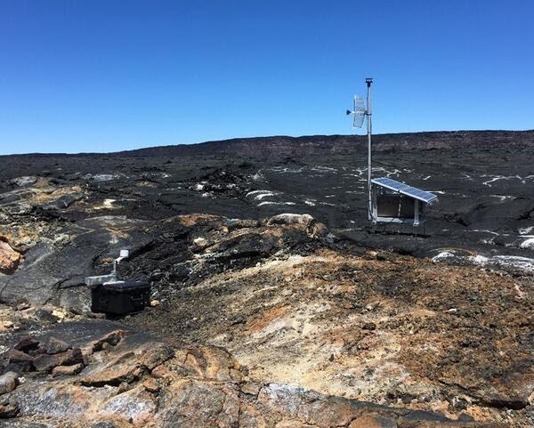 When lava poured out over the floor of Moku‘āweoweo, Mauna Loa’s summit caldera, late on the night of November 27, 2022, it was still many hours away from infrastructure. Or most infrastructure. The lava eventually blocked Mauna Loa NOAA observatory access road the next day, but well before it got there, it destroyed the Hawaiian Volcano Observatory’s (HVO’s) summit gas measuring station—less than ten minutes after the eruption began. The station measured four gases—sulfur dioxide (SO2), carbon dioxide (CO2), hydrogen sulfide (H2S), and water vapor—as well as meteorological parameters including wind speed and fumarole (small gas vent) temperature. As part of HVO’s monitoring network, the station was installed to alert HVO of any changes in gas concentrations or the temperature at the site. Had the station survived, it would have given HVO a rich dataset regarding the chemistry of any eruptive gases blown toward it. CO2 in particular can be indicative of deep magma recharge, either before or after an eruption. For example, at Kīlauea, a decrease in the proportion of CO2 relative to SO2 over a few months was a clue hinting at the eventual onset of Kīlauea’s 2008-2018 summit eruption. At Mauna Loa, the NOAA observatory has a long history of measuring atmospheric CO2. Volcanic CO2 is removed from their long-term atmospheric dataset, though that removed data can in turn be used to study Mauna Loa’s CO2 emissions. A study published in 2001 by a NOAA observatory scientist—using data from the 1950s through the 1990s, which covers the periods after the 1950, the 1975, and the 1984 eruptions—showed that most CO2 there has been released after each of those eruptions. That study also showed a small increase in CO2 emission from Mauna Loa in the 1990s, when there was no eruption. It’s possible that this CO2 pulse was related to a deep magma intrusion that didn’t make it to the surface. There was no increase in CO2 emission detected before the 2022 eruption; however, based on the 2001 NOAA study, we might expect enhanced CO2 degassing now that the eruption is over. Given the potential for anomalous CO2 emissions before, during, and after eruptions, HVO is eager to replace the station at Mauna Loa summit as soon as possible. However, before we can do that, we need to find a new suitable location. The previous station was on the floor of Moku‘āweoweo, where we hoped that it might detect increased degassing before a new eruption, but that location clearly came with a lot of risks. The initial lava flows from the 2022 eruption destroying the station meant that we got no data from it during the ensuing two weeks of eruption. This time, HVO is considering placing a station on the caldera rim, which is close enough to measure CO2 emitted from the caldera during favorable wind conditions and is a much safer spot. A new station there should survive future summit activity and give us gas data throughout eruptions. Earlier in June, HVO gas scientists headed to Mauna Loa’s summit to begin searching for locations where gas might already be leaking out of the ground. They brought with them small, portable versions of the same gas sensors that are part of larger permanent monitoring stations. Visits to other summit locations are planned for later this summer as we continue the hunt for the best spot for the new station. As you read this, you may be wondering how volcanic CO2 emissions like those at Mauna Loa and Kīlauea compare to other sources of CO2, such as those from industry. Though volcanoes and their eruptions may seem like they should be big factors in the global CO2 budget, volcanoes release less than 1% of the CO2 emitted by human activities. Although the amount of CO2 emitted by Mauna Loa may be small in a global view, it could still yield important clues about Mauna Loa’s volcanic processes and future eruptions. HVO hopes to find a location for the new gas monitoring station soon and have it installed in the coming months. In the meantime, HVO does have a similar gas monitoring station high on Mauna Loa’s Southwest Rift Zone, as well as another at Kīlauea summit. Even without our Mauna Loa summit station, we are still keeping an eye on our volcanoes and their degassing. ---- Image and captions from USGS: [1] The former gas monitoring station in Moku‘āweoweo, Mauna Loa's summit caldera. Power and telemetry components of the station are to the right in the image, with solar panels. The gas sensors themselves were housed in the black box toward the lower left of the image. Note that the white, yellow, and orange discoloration of the dark ground surface is a result of volcanic gases reacting with the darker rocks. USGS photo by K. Calles. [2] An HVO gas scientist carrying portable gas sensor (yellow box) near Mauna Loa summit in June 2023. The white material on the ground in this photo is snow. USGS photo by P. Nadeau. ---- Volcano Watch is a weekly article and activity update written by U.S. Geological Survey Hawaiian Volcano Observatory scientists and affiliates.