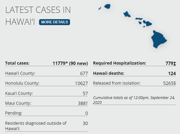 5 new cases via Hawaii DoH and HCCD, 7-day average on test positivity on island is slow decreasing, now at 1.2% (HDOH). There have been a total of 672 (+13) confirmed cases on Hawaiʻi Island according to DoH, with 157 (-5 net) active cases of COVID-19 implied. As of yesterday, HMC reported 15 hospitalized in Hilo with COVID-19; 3 in ICU, 11 in COVID Unit, and 1 in Extended Care Facility (via HMC FB). Hawaii Island Deaths Total via HCCD: 28 (0) The Hilo Veterans Home as of yesterday has 70 (0) residents and 34 (0) employees test positive for COVID-19 (HMC). 26 deaths on island are related to the Yukio Okutsu State Veterans Home in Hilo. Total Cases Statewide: 11,779 (+90 today) Released from Isolation: 5,265 (+140) Total Required Hospitalization: 779 (+16) Total Deaths: 124 (+2) (DOH) *As a result of updated information, one case from Hawaii was removed from the counts". ~ DoH