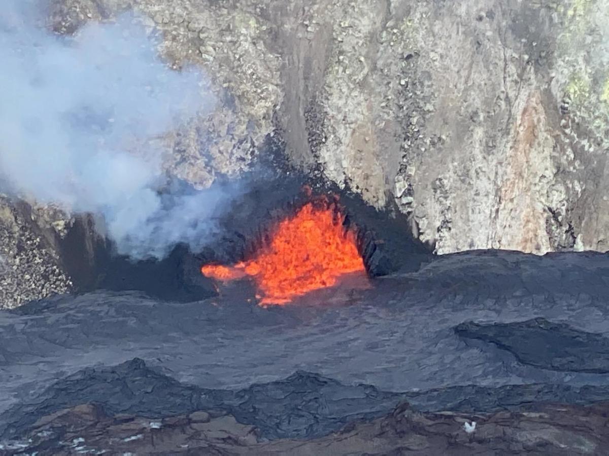 Both fissures feeding the lava lake appear to be growing weaker compared to yesterday. The western fissure has continued to weaken and reports from field crews are that only intermittent spattering is visible now from it. This afternoon, USGS crews observed that the "fissure seems weaker than last night." The big question is what will happen when the primary fissure is completely blocked by the lake. It's possible some fountains could bubble up in the lake. This happened in the 1967-1968 eruption in Halema'uma'u as you can see from the photos on this page. https://www.nps.gov/media/photo/gallery.htm?pg=6685606&id=38CB3F2A-F044-409C-B592-E876853971FC Another possibility is that this first episode could stop once the lake covers the fissure. Will be interesting to see what happens next! (Images and captions via USGS) Image 1 The Halema‘uma‘u crater at Kīlauea summit continues to slowly fill with lava from the ongoing eruption. As the lava lake rises, it gradually drowns more of the northern fissure. The western fissure activity continues to weaken, and field crews are reporting that only rare intermittent spattering is visible. USGS photo taken on December 25 by F. Trusdell. Image 2 The main northern fissure erupting within Halema‘uma‘u is slowly being drowned by the rising lava lake. This telephoto image shows that the fissure has two adjacent fountains, the main fountain is on the east (right side) and there is a tiny fountain to the west (left side). The smaller fountain is not visible from the Hawaiian Volcano Observatory webcams located on Halema‘uma‘u’s western rim, because the fissures spatter cone blocks it from view. USGS photo taken on December 25 by F. Trusdell. Image 3 On the evening of December 25, 2020, the eruption in Halema‘uma‘u crater at Kīlauea's summit continued. Throughout the day, fountaining at two vents continued to feed the rising lava lake which slowly fills Halema‘uma‘u. This photo, taken at approximately 6 p.m. HST from the south rim of the crater shows the main northern vent that is being drowned by the rising lava lake. Intermittent activity continues at the weaker west vent. USGS photo by M. Patrick.