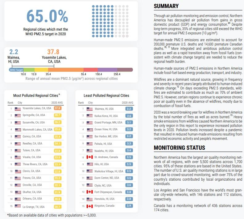 The IQAir Air Quality Index that gauges the grade of air quality across many of the world’s cities in 2020 lists Hawaii Island has 7 of the top 10 cities in North America, and the least polluted city in the entire poll, based on the amount of fine particulate matter in the air! The report determined that the cleanest air in the world last year was Waimea, HI, with fine 2.5PM averaging 2.2 µg/m3. Here are the 15 least polluted cities in North America on average in 2020 based on PM2.5 measurements: (Location - µg/m^3) 1. Waimea, HI, USA - 2.2 2. Kailua Kona, HI, USA - 2.6 3. Grand Portage, MN, USA - 3.1 4. Ocean View, HI, USA - 3.2 5. Bar Harbor, ME, USA - 3.2 6. Pahala, HI, USA - 3.3 7. Naalehu, HI, USA - 3.4 8. St. Andrews, Canada - 3.5 9. Hilo, HI, USA - 3.5 10. Waikoloa Village, HI, USA - 3.5 11. Dunn Center, ND, USA - 3.5 12. Clyde, NC, USA - 3.6 13. Fort Chipewyan, Canada - 3.8 14. Honolulu, HI, USA - 3.8 15. Kingston, Canada - 3.9 Waimea’s average rating of 2.2 µg/m^3 is the lowest ranking for cities in the entire world, with Australia coming in closely behind with several cities between 2.4 and 2.6µg/m^3, and Finland (Muonio) with a 2.8µg/m^3. The findings are limited by the amount of suitable monitoring stations that poll frequently enough to fit IQAir’s criteria, but in North America alone there are 5,500 monitors covering 1,700 cities encompassed into the report. The report notes that wildfires are the primary source of fine particulate matter (PM2.5) that is basis of the findings (fires are estimated to make up 70% of PM2.5 in the air), but in Hawaii we also have volcanoes that produce PM2.5. 2020, however, was a year of low emissions from Kilauea. The most recent eruption of Kilauea that began on December 20th, 2020 did not prevent Hawaii Island from taking the ‘least polluted regional cities’ ranking in the last year, but that eruption might prevent a repeat next year as most of that eruption carried into 2021. None of the Big Island locations that ranked among the least polluted cities in 2020 made the list in 2018, which can be easily explained by the legendary LERZ eruption of Kilauea that year, and prior to that the 35 year long eruption of Puʻu ʻŌʻō blanketed much of the island in VOG. Following the end of the 2018 eruption the air quality dramatically improved across the island, but mainly in West Hawaii. Many of the Hawaii cities listed in 2020 also made the list for least polluted air in North America also made the list in 2019. How do these findings match-up with your experiences? The full 2020 World Air Quality Report from IQAir is available here: https://www.iqair.com/world-most-polluted-cities/world-air-quality-report-2020-en.pdf NOTE: The cutoff for a ‘city’ is a population of greater than 5,000 people. I had to lookup the population of Hawaiian Oceanview Estates as I had doubts about exceeding that 5,000 person threshold, but according to the Census Bureau in 2019 there are 5,011 people in that region.