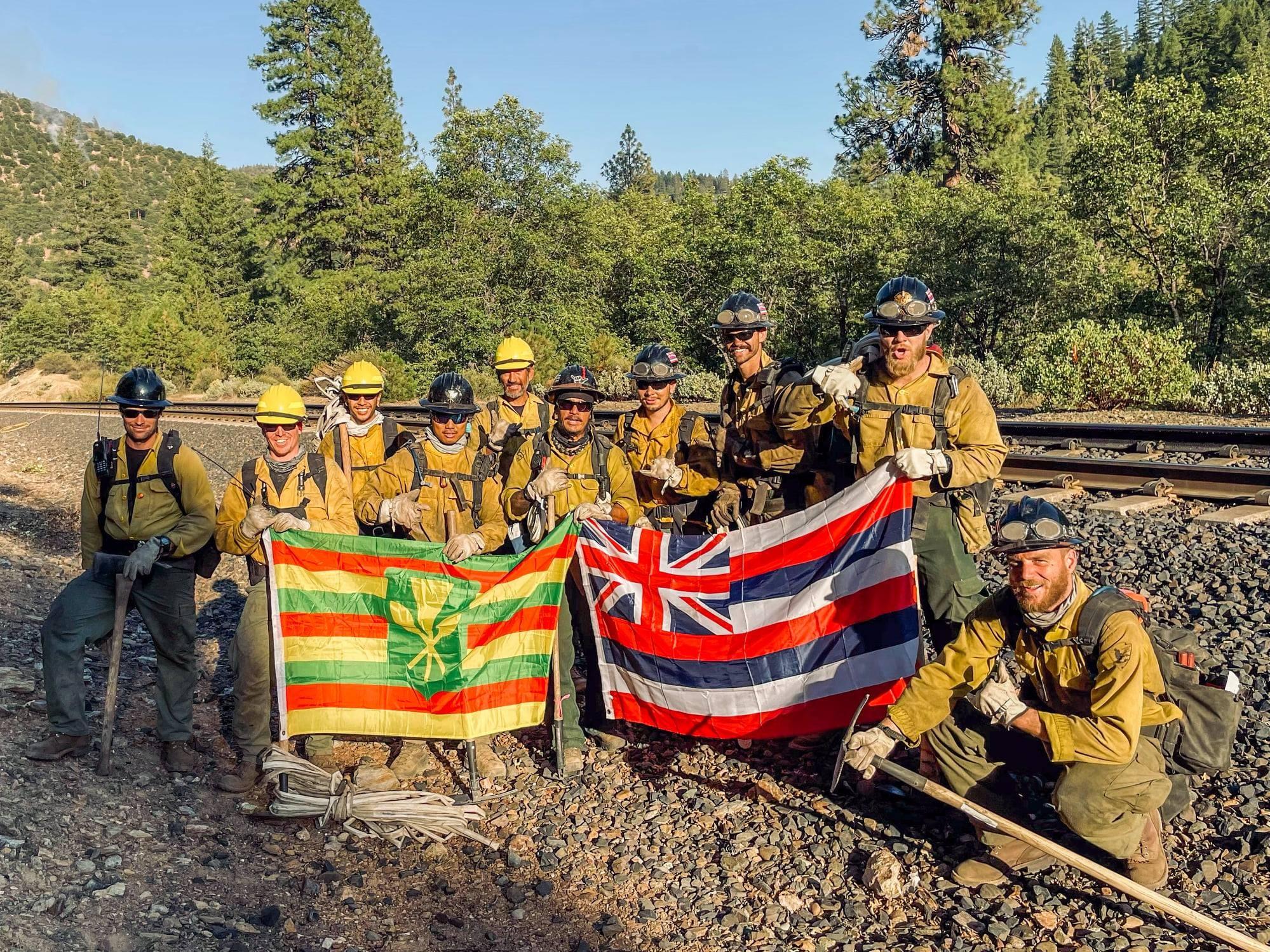 The Dixie Fire in Plumas County is now the 11th largest wildfire in California's history, with almost a quarter million acres burnt and only 35% containment. To assist with the huge fire many crews from around the country have flown into Northern California, including a crew from the Hawai'i Volcanoes National Park. The engine crew helps protect Hawai’i Volcanoes National Park and wildlands throughout the Pacific Islands, and are now assisting with mop up and thinning the parameters of bulldozer lines for fire containment. “I became a firefighter to try something different, and I liked the idea of a high-action job and a financially stable career. But now, it’s not about the action or the money. It’s about helping people and having a purpose in life.” Says Andrew Lee, the assistant crew boss, “We are a happy crew. We laugh a lot and sing. If you aren’t happy, you aren’t ready to work.” Having lived in Plumas County in areas that have been under threat, and now live in Hawaii, it's quite incredible to see the Ka Hae Hawaiʻi flag and the Kanaka Maoli flag being displayed in the forests I used to know all too well. "Thank you, mahalo iā ‘oe, for helping us out on the mainland." ~ U.S. Forest Service-Plumas National Forest.