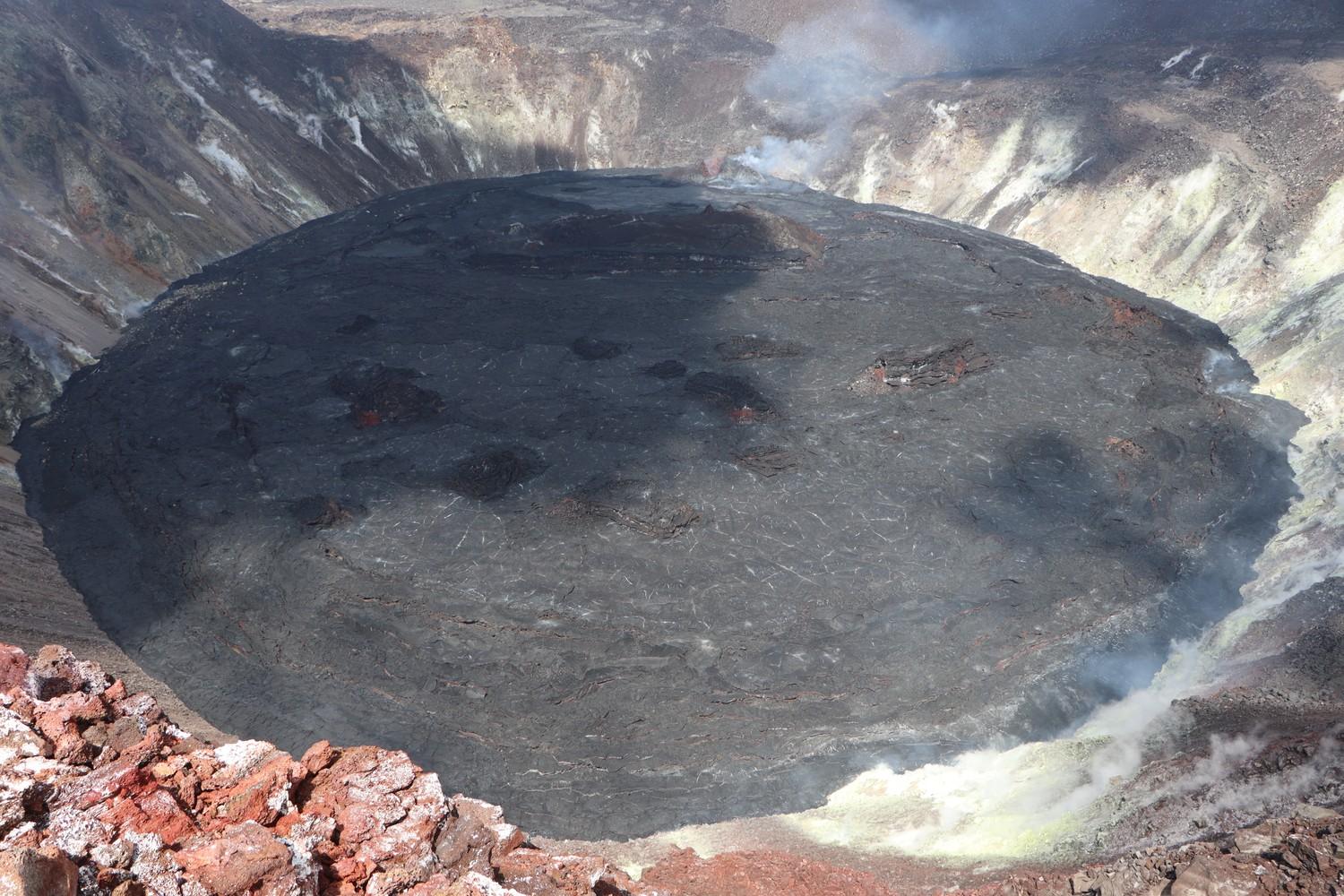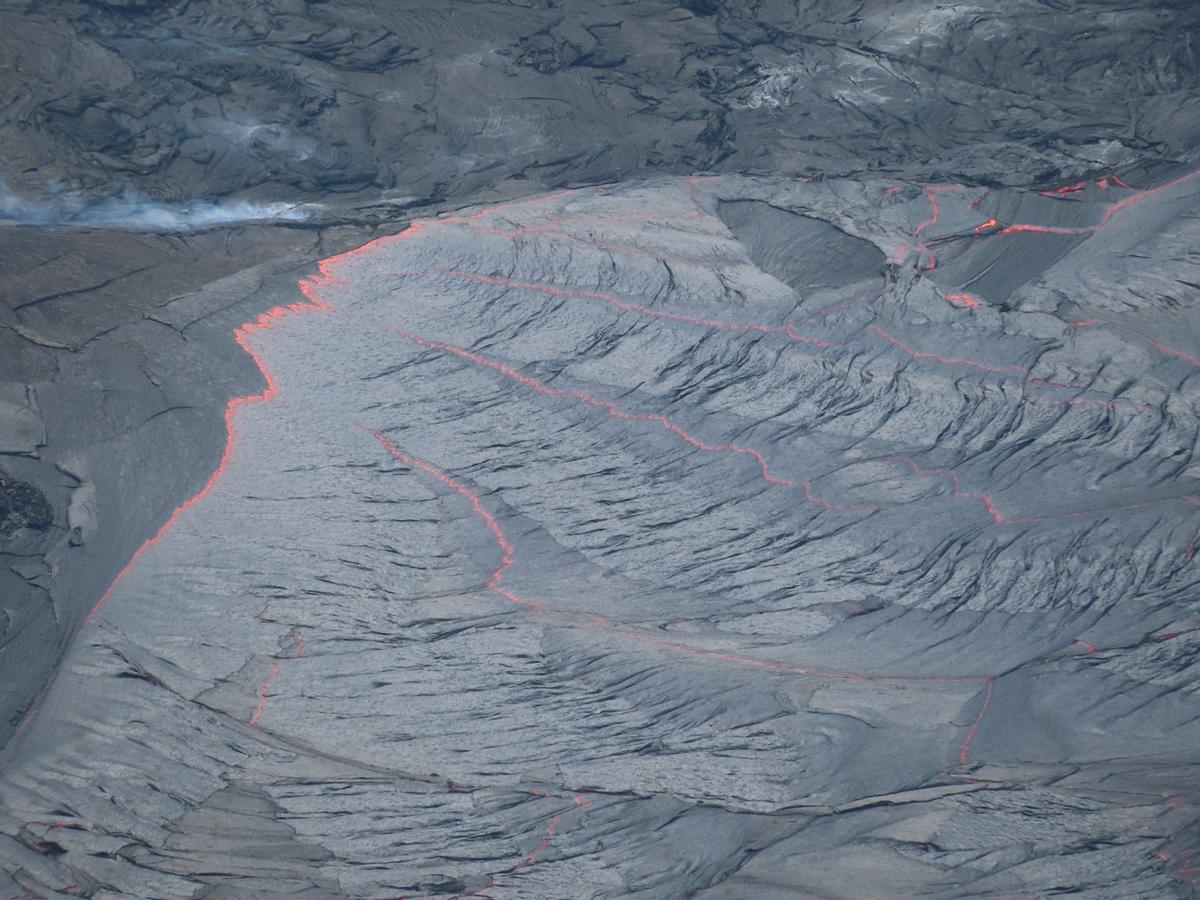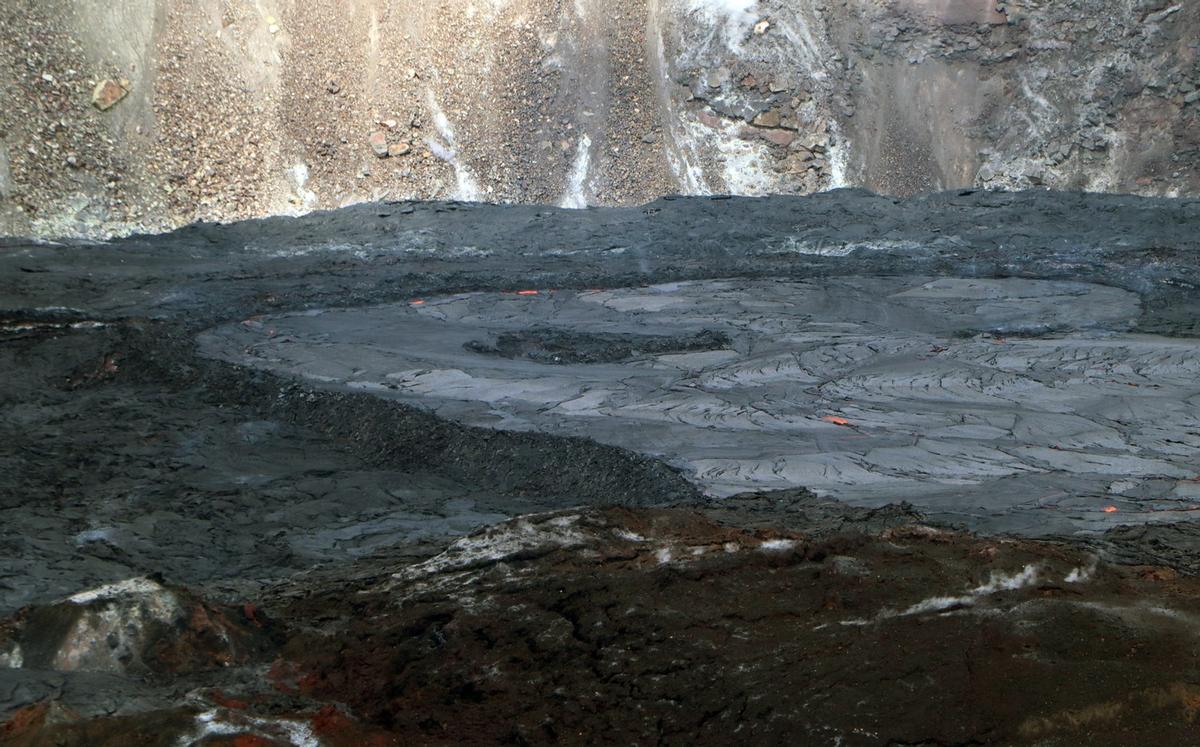As Kīlauea’s ongoing eruption reaches the four-month milestone, its output rate continues to gradually decline. Still, lava continues flowing into and filling a summit lava lake within Halemaʻumaʻu crater. According to the USGS Hawaiian Volcano Observatory, “the lava stream [into the lake] was covered in a thin, flexible crust and was moving at a very slow velocity.” Other than small changes in the lake entry, occasional small flows continue around the West Vent. Still no signs of any major change in the eruption apparent in monitoring signals, and the low-effusion phase continues. Latest on Kīlauea, Eruption Day 121, and statistics through 4 months: -West Vent entry points remain submerged, and their pathways crusted over, though occasional increases in flow lead to overflows from the cones -- this week towards the crater wall, last week into the lake -Lava lake crested at 745 ft / 227 m deep during the past week (USGS). The lake filled 663 ft / 202 m during the first month, 55 ft / 16 m in the second month, 14 ft / 5 m in the third month, and 9 ft / 3 m in the past month. -Small, triple Deflation-Inflation event ongoing; correspondingly, lake surface lowers slightly to 741 ft / 226 m deep, and no ooze-up flows along crater walls during past week. -GPS across summit caldera measuring continuing extension, but at a slower rate over the past month. Seismic activity below background, mostly focused below summit and South Flank. -SO2 last week measured at 950 tonnes/day (USGS), within average range of the past 2 months. Maximum reported emissions of 50,000 t/d during the first month, 2,200 t/d in the second month, 1,100 t/d in the third month, and 1,200 t/d during the past month. -Total eruption area 44 hectares / 109 acres, active lake area down to 3 hectares / 8 acres -Lake volume 39 Million cubic meters / 10 Billion gallons -Unofficial estimated output over the past month of ~20 ft3/s / ~0.5 m3/s. First month ~400 ft3/s / ~10 m3/s, second month ~80 ft3/s / ~2 m3/s, third month ~40 ft3/s / ~1 m3/s. (Peak ~3200 ft3/s / ~90 m3/s on the second day; average over the whole eruption ~140 ft3/s / ~4 m3/s from calculations based on preliminary USGS data reports.) Join our weekly live video review of Kīlauea’s eruption! Broadcast at 5pm HST Tuesdays and archived, along with short video updates, on this channel - including monitoring signals, photos & videos, time-lapses, geologic context and annotation, and discussion of live viewer questions. #Kilauea2021 Images: 1. A view of the lava lake from the east rim of Halema‘uma‘u Crater, at the summit of Kīlauea. The active portion of the lake is present at the far (western) end of the crater. USGS photo by M. Patrick on April 16, 2021. 2. A close-up view of the western fissure within Halema‘uma‘u at the summit of Kīlauea Volcano, Island of Hawai‘i. Lava continues to enter the lava lake from a wide inlet near the base of the western vent (fuming at center right). Crustal foundering is common on the active lava lake surface (center bottom), located on the western side of the crater. This photograph was taken on April 14, 2021, at 1:53 p.m. HST from the south rim of Halema‘uma‘u, an area within Hawai‘i Volcanoes National Park that remains closed to the public due to safety reasons. USGS photo by J.M. Chang. 3. A close up view of the inlet at the western margin of the lava lake in Halema‘uma‘u Crater, at the summit of Kīlauea. The lava stream was covered in a thin, flexible crust and was moving at a very slow velocity. USGS photo taken by M. Patrick on April 13, 2021. 4. A view of the south margin of the perched lava lake in Halema‘uma‘u Crater, at the summit of Kīlauea. This photo was taken from the east rim of the crater, and shows the steep levee containing the lake. USGS photo by M. Patrick. 5. This view from the south rim of Halema‘uma‘u shows the perched lava lake, supplied by lava from the western fissure (upper right portion of photo). The levee surrounding the active lava lake is up to about 5 m (16 ft) high. USGS photo by M. Patrick on April 13, 2021.