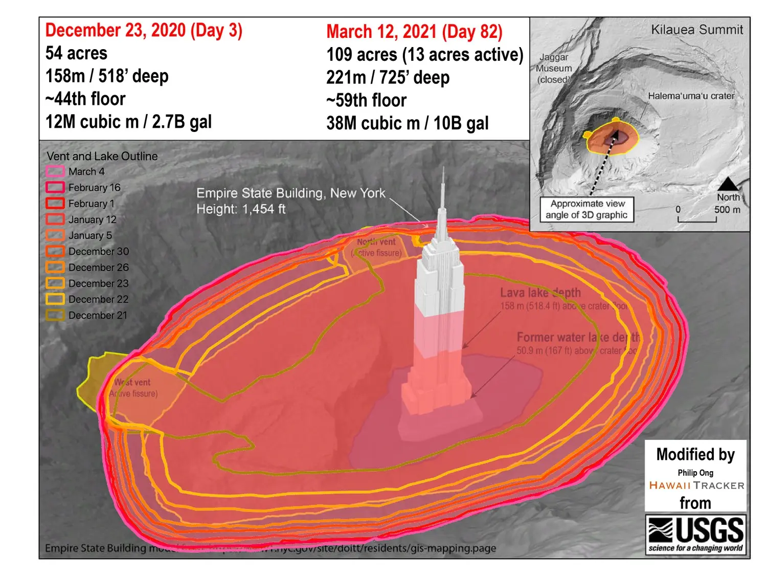Kīlauea Lava Lake Depth Update: Empire State Comparison