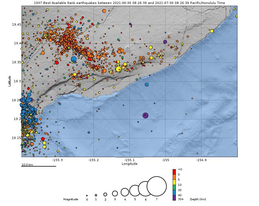 As July comes to an end, Kīlauea’s recent inflationary pattern continues, with ongoing seismicity slightly elevated as the volcano continues to slowly swell without significant changes near the surface. USGS Hawaiian Volcano Observatory tilt and GPS monitors continue to show a modest, consistent rise with only one deflation-inflation event in the past two weeks, and while the most recent gas measurement of ~85 tonnes per day on July 28 is slightly up, it still falls within the range of the elevated background at the summit, as documented for similar non-eruptive intervals. The crust of the inactive lava lake continues to settle, often slowly but occasionally more quickly as it continues to adjust and cool over the still-liquid lava below. HVO scientists have been surveying the inactive lava lake, mapping gas emissions on the down-dropped portion of the caldera floor, maintaining web-cams, and conducting water table measurements at the Keller Well as shared in images this past week. Within the past month, a handful of deeper earthquakes around and to the south of the summit fall into a root region of the magma system in the 15-25 mi (25-40 km) range, with the largest a magnitude 3.4 on July 21 at a depth of 15.5 mi (25 km). Closer to the surface, the extended reservoir spanning the summit region and the Upper East Rift / East Rift Connector continues to quake at an elevated rate, and to a lesser degree along with the East Rift as far as Puʻuʻōʻō and a significant portion of the south flank, which is sliding to accommodate expansion of the summit and rift as usual. Earthquake rates are relatively steady, and while elevated are still below the levels expected in the short-term build-up to an eruption. While it’s only a matter of time until Kīlauea’s next breakout of lava, there are still no signs of short-term change or resumption of the eruption, while the long-term filling trend persists. #Kilauea2021 Join our weekly live video review of Kīlauea and Maunaloa volcanoes, at 5pm Hawaiʻi time Thursdays! To support our productions please like, share and subscribe! Mahalo!