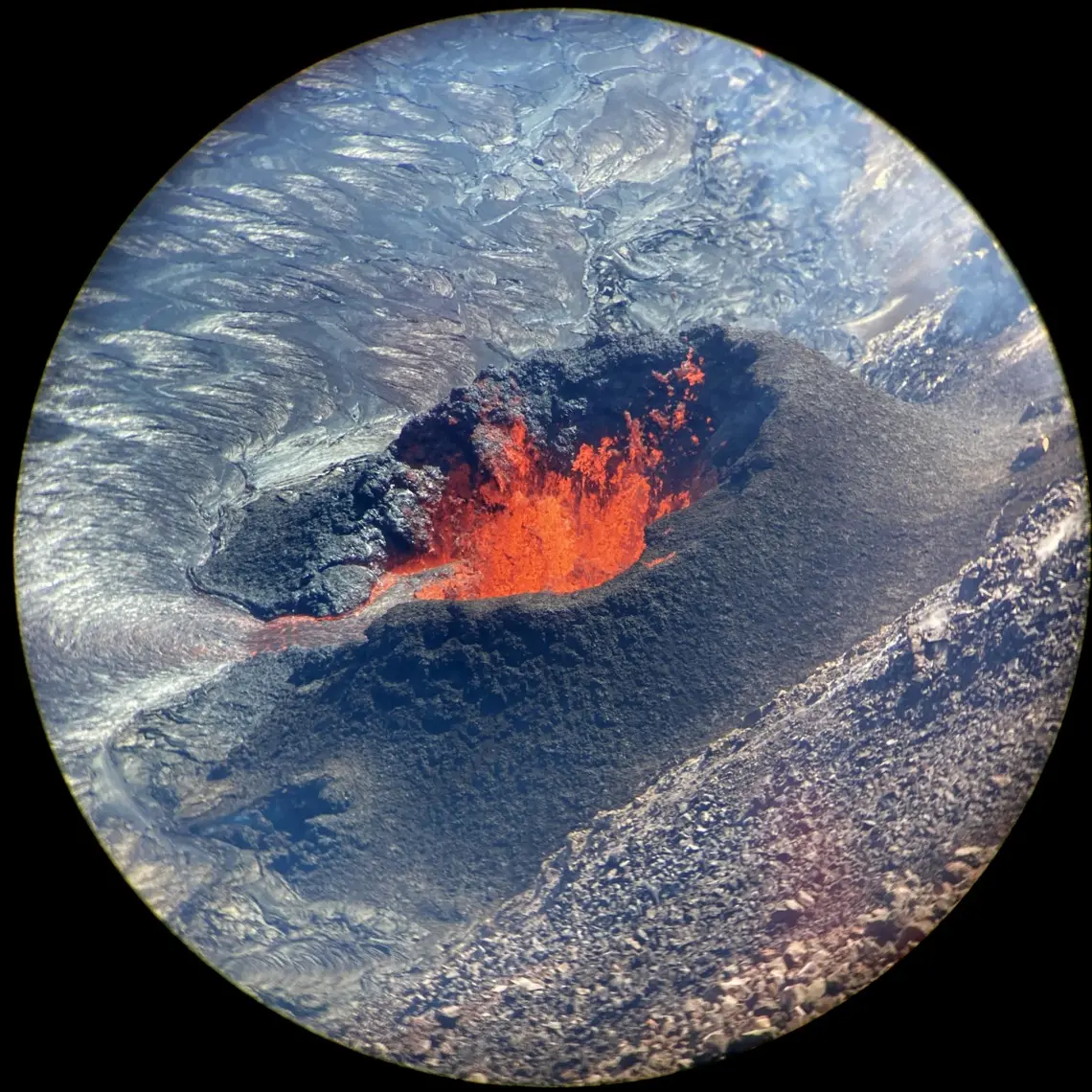 Pretty amazing how tall that cone is, being still 90+ feet above the lava lake, and the lava lake still rising that much.