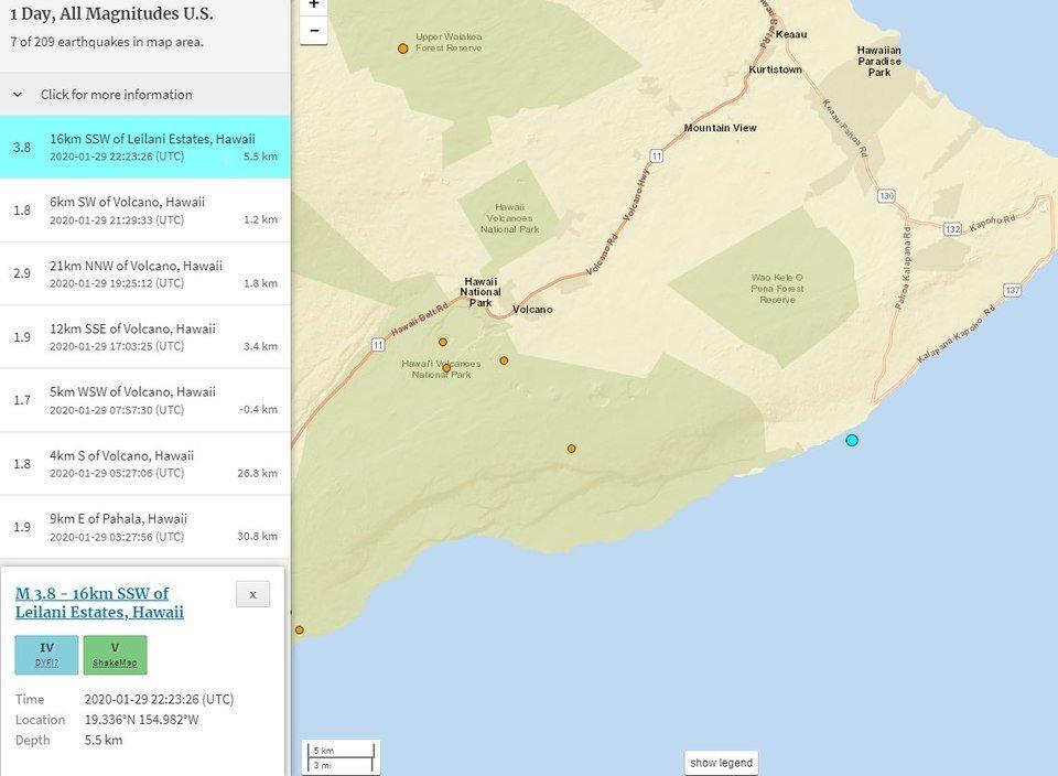 M3.8 Earthquake This Afternoon on the South Flank of Kilauea