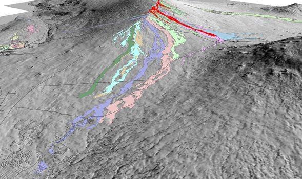 Update from Kit Tincher - "Just geeking out as we wait to see what is going to happen next with the eruption. I wanted to share a few 3D scenes I put together that I thought might help some visualize where the flows were and what the topography looked like around the area. Red polygon is the current 2022 Mauna Loa lava flows and all historic flows are colored in pastel colors. Roads are also shown in black lines. Pic 1 is from the NE looking back over the shoulder of Mauna Kea at Mauna Loa. Pic 2 is high above Kohala looking towards the SE. Pic 3 is generally over Hilo/Hamakua coast looking SW. You can see Kilauea Caldera to the left of the image. Enjoy, aloha!" Kit