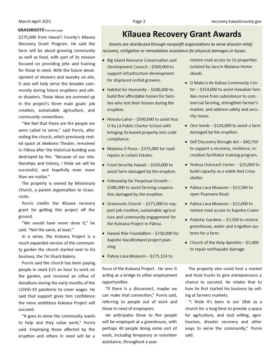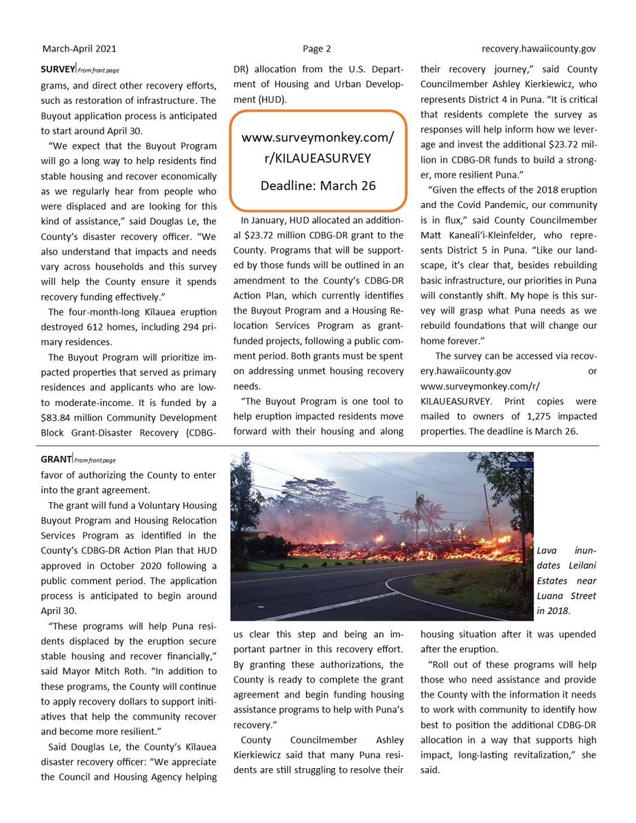 March-April 2021 Kīlauea Recovery Newsletter