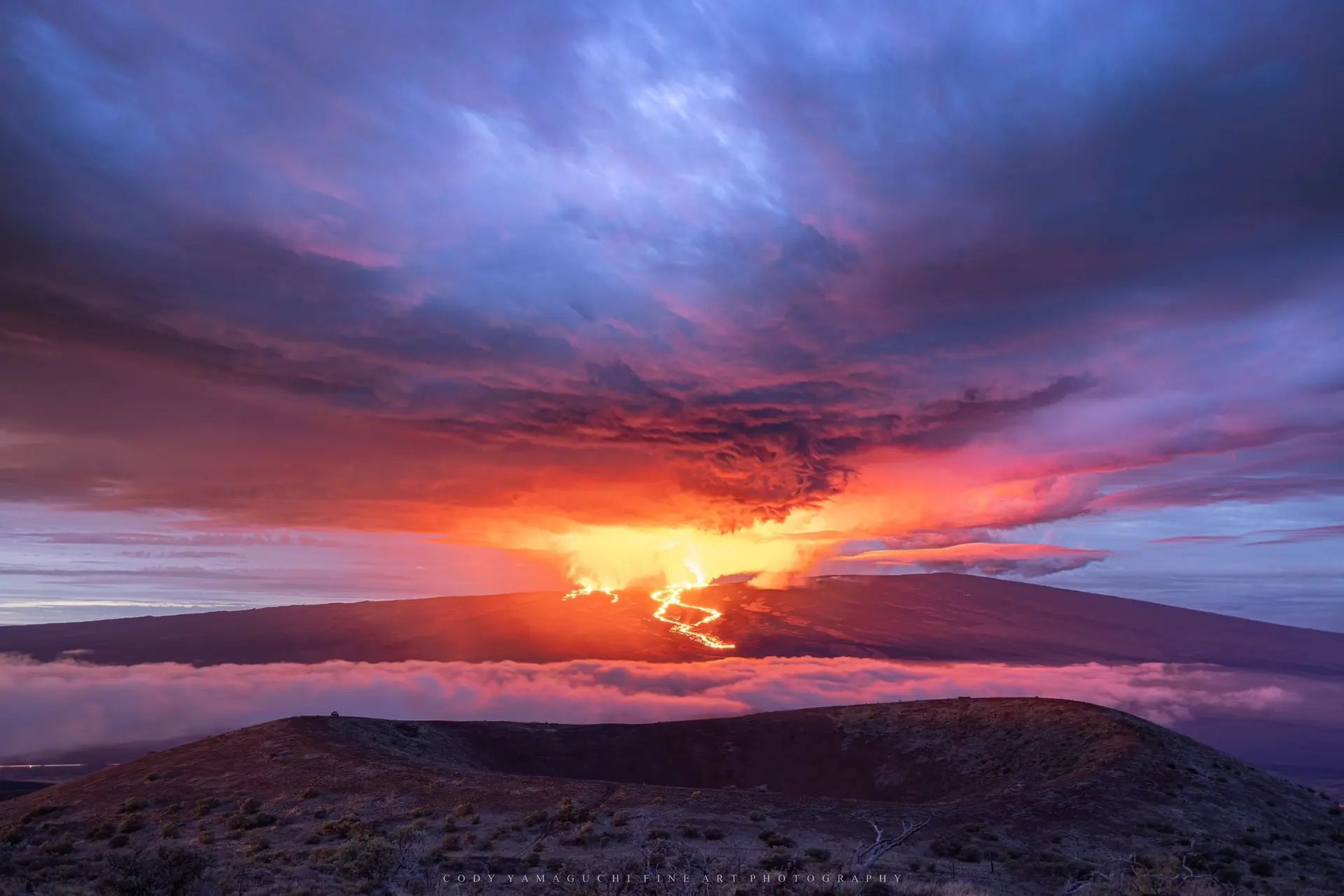 Episode 24 of the ongoing Halemaʻumaʻu eruption began at 8:55 PM HST on June 4 and is currently fountaining from the north vent. Episode 24 was preceded by sporadic spatter, gas pistoning, and hydrogen flames that began on the morning of June 3. At approximately 8:55 PM HST, episode 24 began with low dome fountaining accompanied by lava flows onto the crater floor. Small sustained lava fountains, less than about 100 feet (30 meters) high, began erupting from the north vent around 9:15 PM. Activity increased again around 10:10 PM, when fountain heights increased to 325 feet (100 meters) and by 10:40 reached over 980 feet (300 meters). Additionally, the fountain generated a plume that reached 16,500 feet (5,000 meters) above ground level by 10:50 PM and is increasing. At a tiltmeter near Uēkahuna (UWD), inflationary tilt reached just over 14 microradians since the end of the last episode; slightly more than the amount of deflationary tilt in episode 23. Seismic tremor began increasing and tilt at UWD switched from inflation to deflation at about 9:00 PM HST, close in time to the beginning of low fountaining. Most episodes of Halemaʻumaʻu lava fountaining since December 23, 2024, have continued for around a day or less and have been separated by pauses in eruptive activity lasting generally at least several days.