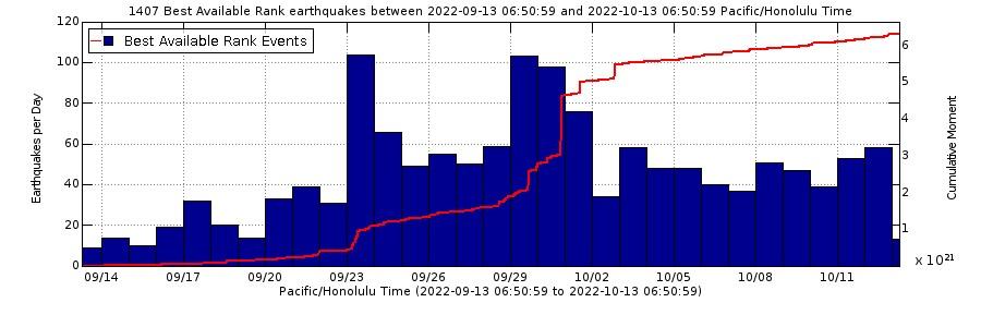 Maunaloa Report: Earthquakes Elevated, Down From Recent Peak, October 13, 2022