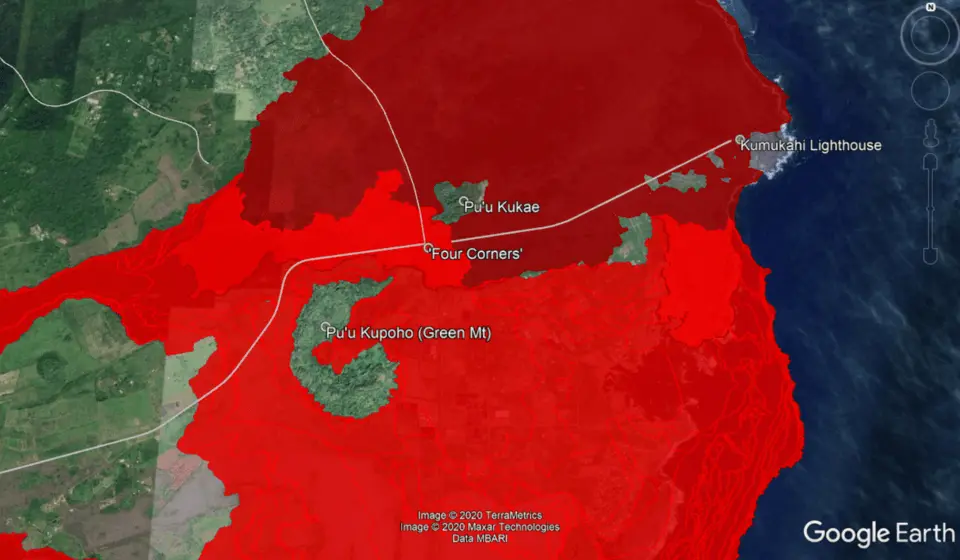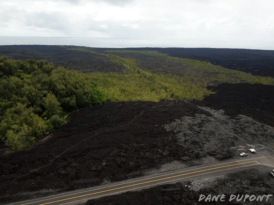 Today, the group Kupono organized an educational post located at 'four corners' to inform visitors looking for the beach on the potential hazards and cultural sites in the area (like Pu'u Kukae). Cape Kumukahi is the eastern most point in all of Hawaii, and is where the sun first rises on the islands everyday. The point hold cultural significance, and also represents a navigational landmark, the Kumukahi lighthouse, which has avoided two significant nearby lava flows since it was built. Following the end of the 2018 eruption, the area has been effectively cut off by roughly 700ft of lava covering the upper section of Lighthouse Road. In the last year and a half, two trails were established, one trail being suitable for ATVs. There are no lifeguards on duty and the currents along the beach is fierce, creating hazards that might not be apparent for those unfamiliar with the area. On May 4th, 2020, the County Department of Public Works installed a concrete barricade at the trail head to prevent vehicles from traversing the rough road over the lava. That barricade lasted less than 24 hours before it was removed. Now the barricade that blocked access to the trail has been relocated across the street from where it was placed. MAP MADE WITH DATA FROM USGS, AND COH.