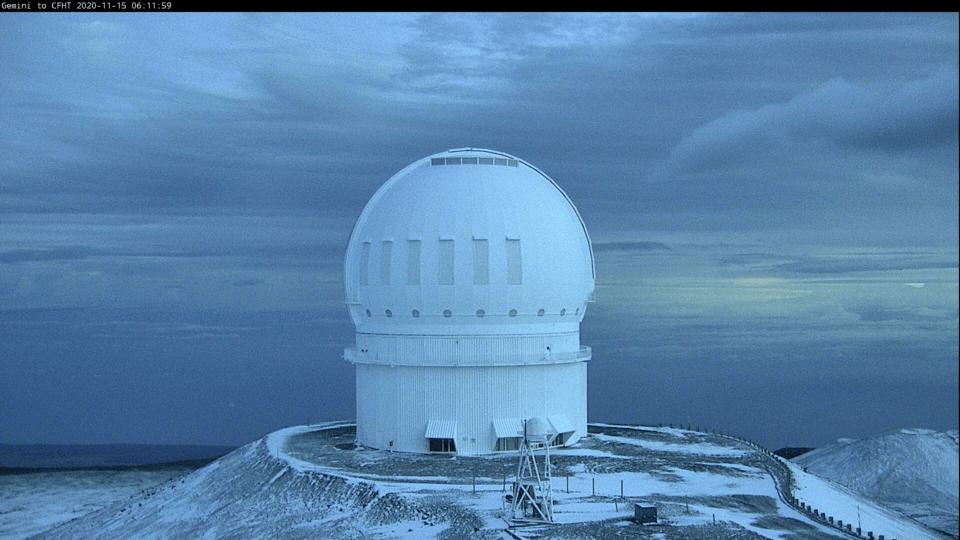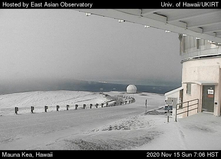 Maunakea has a fresh snow coating around the summit this morning. MKVIS reports that the access road from the 9,200ft elevation up is closed for the day.
