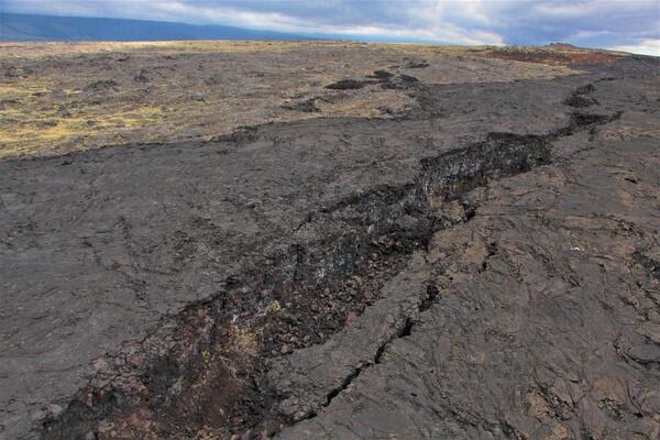 USGS Hawaiian Volcano Observatory — Last month a "Volcano Watch" article discussed the bicentennial of the first visit of westerners to Kīlauea caldera, led by English missionary William Ellis, in 1823. Ellis did not just visit the summit region; he had approached from Kaʻū, traveling along what eventually became known as Kīlauea’s Southwest Rift Zone (SWRZ). Ellis first witnessed evidence of Kīlauea’s restlessness there, in the form of a vast, 4.8-square-mile (12.5 square-kilometer) lava flow that had erupted just a short time before. The eruption was over by the time Ellis passed through the Keaīwa area, just east of the modern town of Pāhala, from July 30–31, 1823. The lava was still steaming, and in places too hot to walk on. Although lava flows can retain heat for many years after an eruption, it seems unlikely in this case, because the flows from this eruption are unusually thin: in most places, the thickness is less than 1 meter (yard). Thinner lava flows dissipate heat much more quickly than thicker ones; therefore, we can assume that the flows visited by Ellis had been molten no more than a few weeks earlier. This assumption aligns with oral accounts from native Hawaiians in the surrounding area, who reported that the eruption had occurred less than a month prior. Over the past century, Hawaiian Volcano Observatory (HVO) scientists have occasionally visited the Keaīwa area to study the eruptive features in detail. They have notably found pāhoehoe lava veneers lapping up the flanks of older cinder cones, several yards (meters) high, resulting in the name “Lava Plastered Cones” that appear on maps of the area. The thin lava veneers on the cones are indicative of high flow velocities, enough to overcome topography standing in the eruption’s way. Think of a water slide with a jump at the end, where fast-moving water briefly flows uphill. At such high velocities, the entire flow would have been emplaced over just a handful of days. In combination with Ellis’s reports, this evidence suggests that the eruption most likely occurred in early to mid-July 1823. Seeing that this eruption produced relatively thin and fast-moving pāhoehoe flows, we know that the lava had a low viscosity. Essentially, it spread across the preexisting ground surface like a coat of spilled paint, rather than sticky tar. But why was the viscosity so low? For most Hawaiian eruptions, such low-viscosity lava is only found very close to the eruptive vent, not over the whole flow field as in 1823. The 1823 eruptive fissure holds clues that may help answer this question. This fissure—part of the feature famously known as the “Great Crack”—stretches 18 miles (12 kilometers) with widths up to 50 feet (15 meters). This width is especially impressive, as most Hawaiian fissures only widen to about 1 yard (meter). The 1823 fissure is also unusual in having no substantial spatter deposits along its length; it’s just a big crack where lava welled up from below and then flowed downhill. It is likely that the Great Crack existed prior to 1823, but it was possibly cleaved more apart by the intrusion of a subsurface magmatic dike when the eruption started. Large blocks of older rock that dropped into the opening and were coated in 1823 lava offer possible evidence that the crack was widening during the eruption. Prolonged dilation may have prevented the eruption from localizing at one vent, thus influencing the character of the effused lava. Another factor to consider is the location of the 1823 eruption, it occurred at a lower elevation along the SWRZ than any event since. The lower end of the fissure system was close enough to sea level that it produced small phreatic explosions, as magma interacted with shallow groundwater. One plausible explanation is that the low elevation eruption engaged an unusually strong pressure gradient in the volcanic plumbing system from Kīlauea’s summit, driving magma to the lower SWRZ with greater force and speed. HVO scientists continue working to solve the mysteries of the 1823 Kīlauea Southwest Rift Zone eruption, but after two hundred years, some questions will inevitably remain unanswered. That is, until another similar eruption occurs that we can observe for ourselves—unlikely in our lifetimes, but generally if something has happened once on a volcano, it can happen again! ———— Images and captions from USGS-HVO: [1] Aerial view of one of the lava-plastered cones, showing thin 1823 pāhoehoe flows (dark gray) draped over older cinder and spatter (tan). Photo by S. Rowland, University of Hawaiʻi at Mānoa. [2] Sources/Usage: Public Domain. Low-angle aerial view of the Great Crack and surrounding 1823 lava flows (dark gray) along Kīlauea’s lower Southwest Rift Zone. The crack is about 50 feet (15 meters) wide in this area with similar but variable depth, depending on the amount of rock rubble filling the opening. USGS photo by D. Downs. ———— Volcano Watch is a weekly article and activity update written by U.S. Geological Survey Hawaiian Volcano Observatory scientists and affiliates.