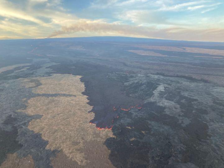 USGS - The Northeast Rift Zone eruption of Mauna Loa continues. One active fissure, fissure 3, is feeding a lava flow advancing slowly northward toward the Daniel K. Inouye Highway (Saddle Road). The lava flow has reached relatively flat ground causing it to slow down significantly over the past several days, as expected. As of 6:00 a.m. today, December 7, the flow front was about 1.8 mi (2.9 km) from the Daniel K. Inouye Highway (Saddle Road). The flow advanced only a small distance since midnight possibly due to a significant breakout removing lava from the channel about 2.8 mi (4.5 km) behind the tip of the main flow on the east side. During the past 24 hours, the main flow has advanced at an average rate slower than 20 feet (6 meters) per hour. The lava flow remains active and is continuously supplied from the fissure 3 vent. HVO crews have installed a new webcam to view the front of the main flow https://www.usgs.gov/.../m9cam-mauna-loa-fissure-3... Advance rates may be highly variable over the coming days and weeks. On the flat ground between Mauna Loa and Mauna Kea, lava flows advance more slowly, spread out, and inflate. Individual lobes may advance quickly, and then stall. Additional breakouts may occur if lava channels get blocked upslope. There are many variables at play and both the direction and timing of flow advances are expected to change over periods of hours to days, making it difficult to estimate when or if the flow will impact Daniel K. Inouye Highway. Sulfur dioxide (SO2) emission rates of approximately 120,000 tonnes per day (t/d) were measured on December 4, 2022, and remain elevated at this time. The International Volcanic Health Hazard Network has detailed information about vog: https://vog.ivhhn.org/. Forecasts for the dispersion of vog can be found on the Mauna Loa Vog Forecasting Dashboard: https://vog.ivhhn.org/content/mauna-loa-eruption Pele's hair (strands of volcanic glass) fragments are being wafted great distances and have been reported as far Laupāhoehoe. Tremor (a signal associated with subsurface fluid movement) continues beneath the currently active fissures. This indicates that magma is still being supplied to the fissure, and activity is likely to continue as long as we see this signal. There is no active lava within Moku'āweoweo caldera nor the Southwest Rift Zone. We do not expect any eruptive activity outside the Northeast Rift Zone. ---- END OF USGS UPDATE ----