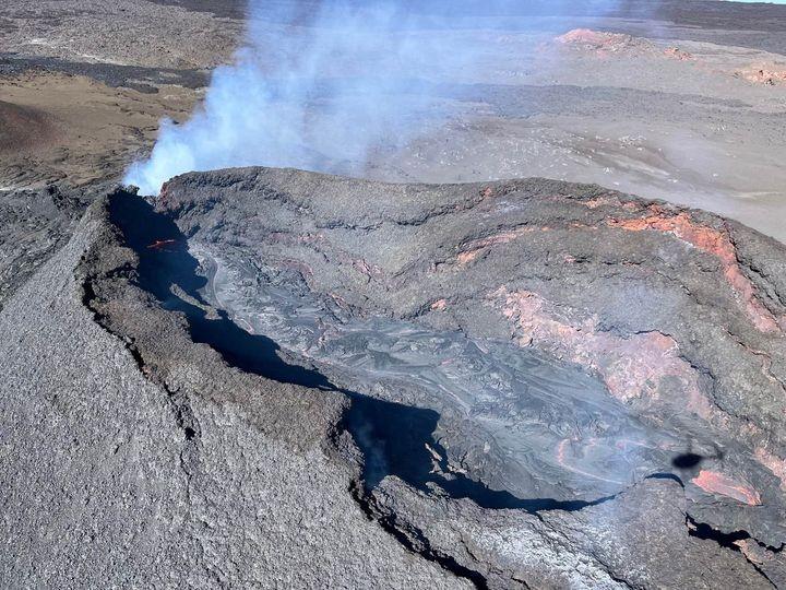 USGS-HVO (12.11.22) - The Northeast Rift Zone eruption of Mauna Loa may still be active. Incandescence is restricted to the cone that formed around the fissure 3 vent, there was no observable activity anywhere on the rest of the flow field overnight. As of 7:00 a.m. today, December 11, the M8 webcam shows very little incandescence and no lava movement in the F3 vent. The channels below the vent appear drained of lava and no longer feed the main flow front. The inactive main flow front has stagnated about 1.7 mi (2.8 km) from the Daniel K. Inouye Highway (Saddle Road) when last measured yesterday morning, December 10. The inactive main flow front still glows at a few spots at night and may inch northward very slowly as it continues to settle. Sulfur dioxide (SO2) emission rates continue to be reduced; on December 9, the emission rate was approximately 20,000 tonnes per day (t/d). The Hawaii Interagency Vog Information Dashboard has detailed information about vog: https://vog.ivhhn.org/. Forecasts for the dispersion of vog can be found on the VMAP Vog Forecast Dashboard: http://weather.hawaii.edu/vmap/new/. Tremor (a signal associated with subsurface fluid movement) is no longer detectable; summit and Northeast Rift Zone inflation started on December 7 and is continuing. The significance of the continuing inflation while the flow field is inactive is not yet clear; it is common for eruptions to wax and wane or pause completely, but none of the eight recorded eruptions from Mauna Loa’s Northeast Rift Zone returned to high eruption rates after those rates decreased significantly. Nevertheless, the Hawaiian Volcano Observatory continues to closely monitor the current activity. There is no active lava within Moku'āweoweo caldera nor in either rift zone. Satellite imagery shows the entire 2022 flow field cooling and no longer active. ---- END OF USGS VOLCANO UPDATE ---- Image and caption from USGS: Aerial view of the fissure 3 cone on the Northeast Rift Zone of Mauna Loa. On December 10, 2022, Hawaiian Volcano Observatory geologists noted there are no fountains present in fissure 3. Only a lava pond is present with minor circulating activity. Photograph by K. Mulliken.