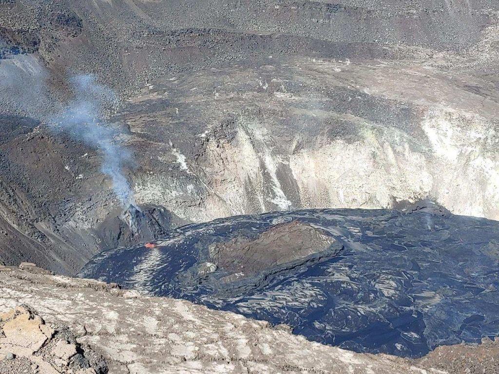 Activity Summary: Lava activity is confined to Halemaʻumaʻu with lava erupting from vents on the northwest side of the crater. Yesterday afternoon (Jan. 3), the lava lake was 190 m (623 ft) deep and perched about a meter (yard) above its edge. SO2 emission rates were still elevated. Summit Observations: Sulfur dioxide emission rate measurements made Friday (Jan. 1) were about 4,400 t/d and in the range 3,000-6,500 t/d since Sunday (Dec. 27)--the same range of values that was common for emissions from the pre-2018 lava lake. Summit tiltmeters recorded weak deflationary tilt over the past three days. Seismicity remained elevated but stable, with steady elevated tremor and a few minor earthquakes. East Rift Zone Observations: Geodetic monitors indicate that the upper portion of the East Rift Zone (between the summit and Puʻu ʻŌʻō) contracted while the summit deflated at the onset of this eruption. There is no seismic or deformation data to indicate that additional magma is currently moving into either of Kīlauea’s rift zones. Halemaʻumaʻu lava lake Observations: The west vents spattered from two places at the top of a small cone plastered on the northwest wall of Halemaʻumaʻu crater. Lava is also emerging as a small dome fountain in front of the west vents probably from a submerged portion of the vent. Both of these sources can be seen in the thermal webcam view of the lava lake. The lava lake was 190 m (623 ft) deep Sunday afternoon (Jan. 3) and had a volume of 26 million cubic meters (34 million cubic yards). The most recent thermal map (Dec. 30) provided the lake dimensions as 800 by 530 m (875 by 580 yds) for a total area of 33 ha (82 acres) (https://www.usgs.gov/maps/december-30-2020-k-lauea-summit-eruption-thermal-map). The lake is now perched about a meter (yard) above its narrow edges as measured yesterday morning (Jan. 3); overflows onto the narrow edge slowly elevated a low wall around the lake similar to an above-ground swimming pool. The main island of cooler, solidified lava floating in the lava lake continued settling in front of the west lava source filling the lake, while the other 10 or so small islands moved a bit around the east end of the lake. The main island measured about 250 m (820 ft) in length, 135 m (440 ft) in width, and about 3 ha (7 acres) in area based on the Dec. 30 thermal map. Measurements Friday afternoon (Jan. 1) showed that the island surface was about 6 m (20 ft) above the lake surface. Near-real time webcam views of the lava lake can be found here: https://volcanoes.usgs.gov/volcanoes/kilauea/multimedia_webcams.html. KILAUEA VOLCANO (VNUM #332010) 19°25'16" N 155°17'13" W, Summit Elevation 4091 ft (1247 m) Current Volcano Alert Level: WATCH Current Aviation Color Code: ORANGE Images and captions from USGS: - Image 1: At Halema‘uma‘u, the west vents (visible in the foreground of this photo as two glowing holes on a cone-shaped feature) erupt occasional spatter. Lava is also emerging in a small dome fountain above the lake crust in front of the west vents, probably from a submerged portion of the vent (visible in the background of this photo as a bright spot with lava crust boundaries emanating from it like a spider web). These processes can be observed in Kīlauea Volcano's summit F1 thermal webcam view of the lava lake. USGS photo by H. Dietterich. - Image 2: Early this morning, the west vents in Halema‘uma‘u spattered from two places at the top of a small cone plastered on the northwest wall. This process can be seen in Kīlauea Volcano's summit F1 thermal webcam view of the lava lake. USGS photo by H. Dietterich. - Image 3: Western fissure lava lake inlet showed low fountaining. Very weak spatter at western vent. Only minor seismic activity observed at summit. The large island in Kīlauea's summit lava lake has drifted closer to the west vent area, where a dome fountain has become more vigorous in the past day. USGS photo by K. Lynn. - Image 4: Halema‘uma‘u lava lake develops ~1-yd-high levee along east & west perimeter (on right & left), allowing lake to be "perched" above base. Levees grow from repeated small overflows & pieces of surface crust that fuse together into a barrier that impounds fluid lake.